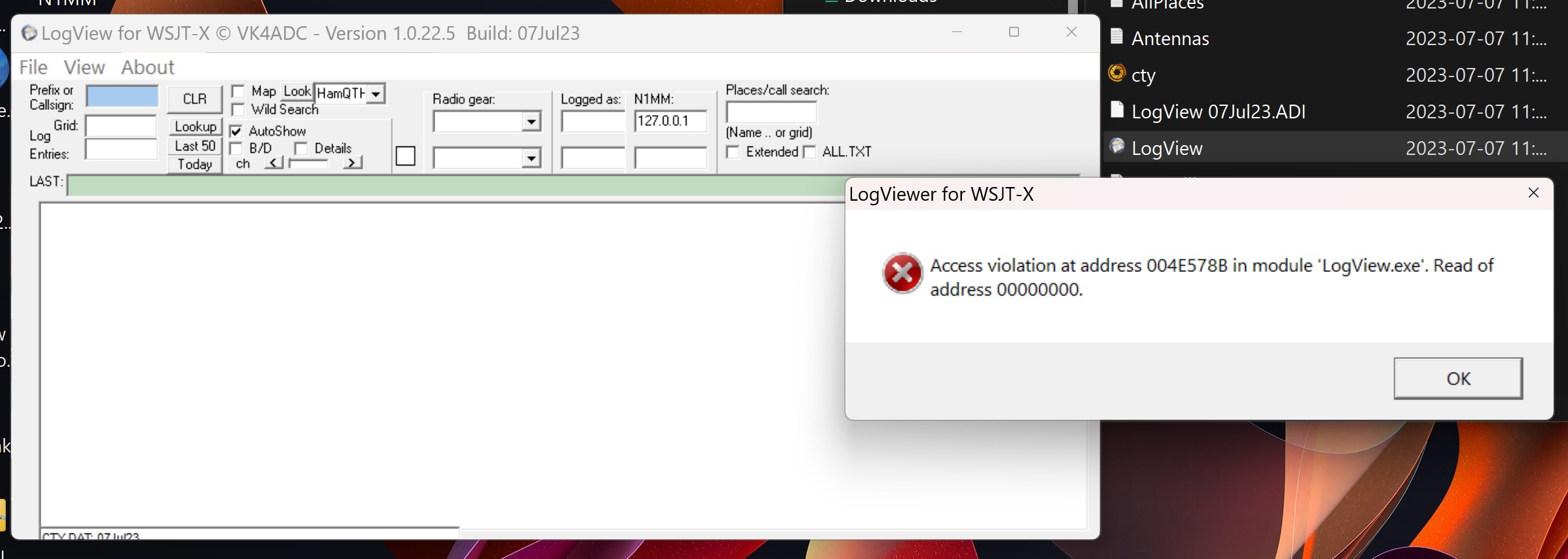 RE: Ham Radio Station Map? - VK4ADC - 10-07-2023 Tom The issue may be because of the build version of the Windows on the PC – whether 32 or 64 bit. Typical LogView error messages says something like that a function does not exist in ssleay32.dll or similar. LogView runs here on 64 bit Win10 on several machines but the correct SSL support must be in place. Only 32 bit SSL library DLLs should be placed in the LogView folder and it will use those versions even if they are installed elsewhere on the system. Now the hard bit is that they must always be the 32 bit version since the development software is 32 bit, even if running on a Windows 64 bit system. Any version found elsewhere on the PC will be an incompatible version, undoubtedly 64 bit. The ZIP pointed to by this weblink has the three SSL files from my working LogView folder, and on a 64 bit machine. Extract them over any already in the Logview folder or if missing, making sure LogView is not running first. Start LogView and the errors should hopefully be gone. 73 Doug VK4ADC |