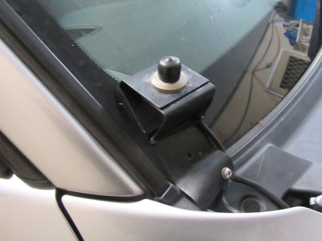Two piece aluminium bracket on other side of vehicle with dual band VHF/UHF end fed antenna.