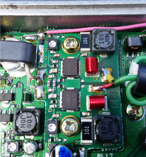 VK5ZT determined that the DC path to ground at the output connector of the FT817 is 22K which means there's no need for a blocking capacitor. This mod uses the TX5V line from the PA as the source of the bias tee voltage. I used a 4K7 series resistor bypassed by a 0.01uf ceramic to feed the common terminal of RL3016 which is the antenna change-over relay to switch between front and back socket. The easiest place to inject is at the junction of L3077 and L3081. Ground the bypass capacitor at JP3003.