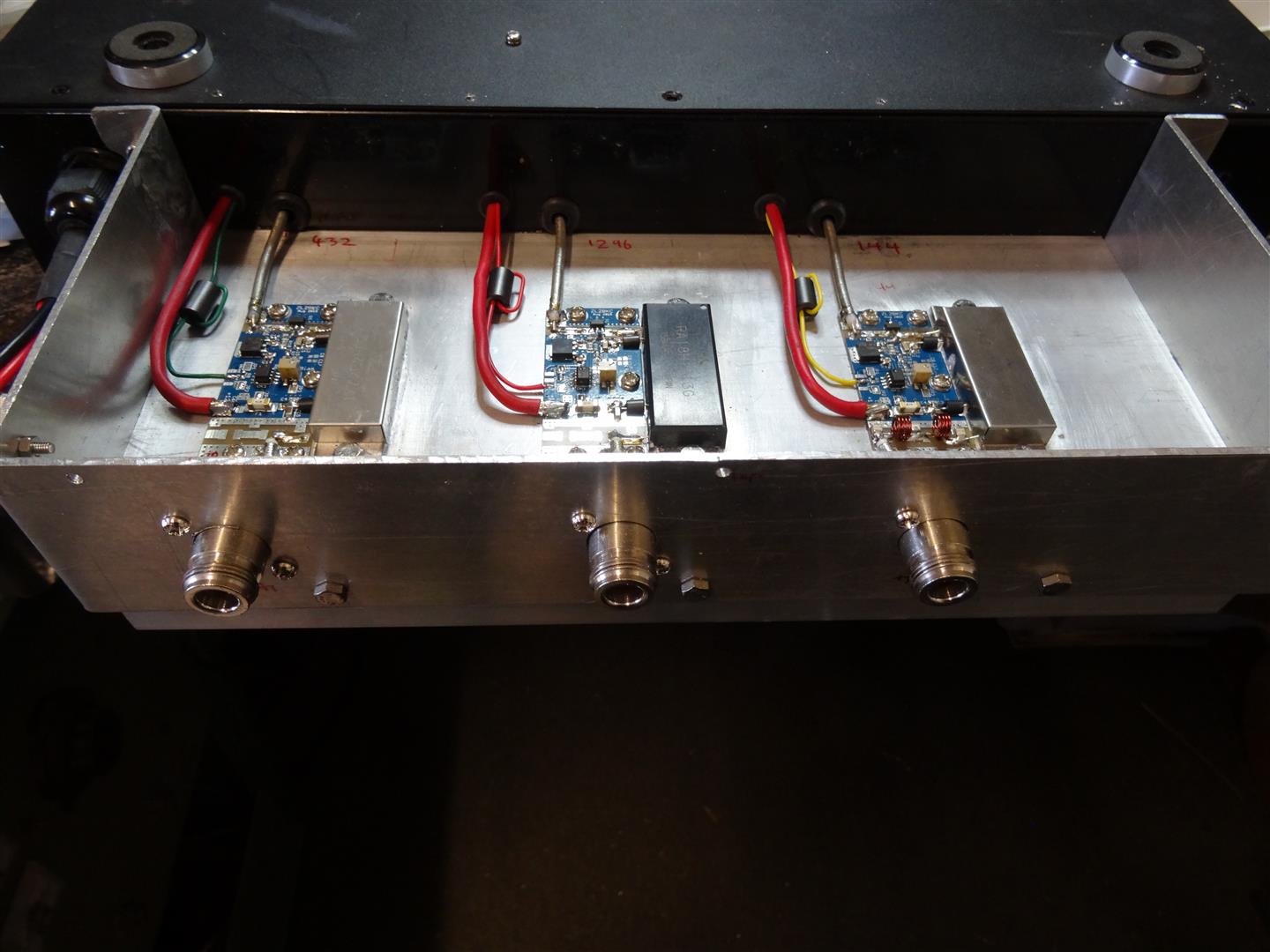 Synth boards for 144, 432 and 1296 (new 50MHz beacon not shown in these photos) Controller and Programmable Oscillators by ZL2BKC (Wayne) see here for details on his web site: https://zl2bkc.com/projects/multi-beacon-controller/