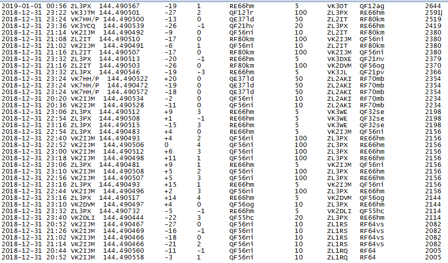 2019-01-04 20:18 VK2MAX 144.490568 +4 0 QF68jv 10 ZL1RQ RF64 1933 Tropo?