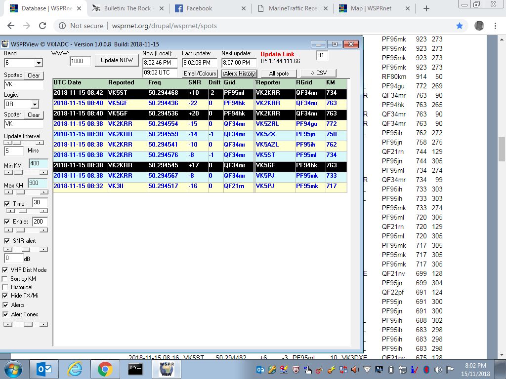 The newest release of WSPRView (1.0.0.8) has a lot of changes made inside it to accent alerts plus can generate emails through and to the likes of GMail (now inbuilt). There is also an audible tone generation (a triple-tone burst) for those who have their WSPR-monitor PC running in their shack and that relieves them from having to watch the screen for alerts. Listen for the triple tones then look ! It should be available for download within a day or so from now.