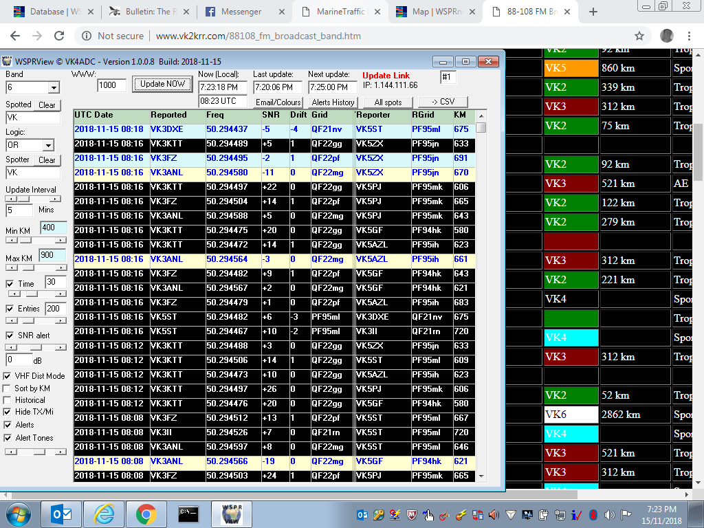 The newest release of WSPRView (1.0.0.8) has a lot of changes made inside it to accent alerts plus can generate emails through and to the likes of GMail (now inbuilt). There is also an audible tone generation (a triple-tone burst) for those who have their WSPR-monitor PC running in their shack and that relieves them from having to watch the screen for alerts. Listen for the triple tones then look ! It should be available for download within a day or so from now.
