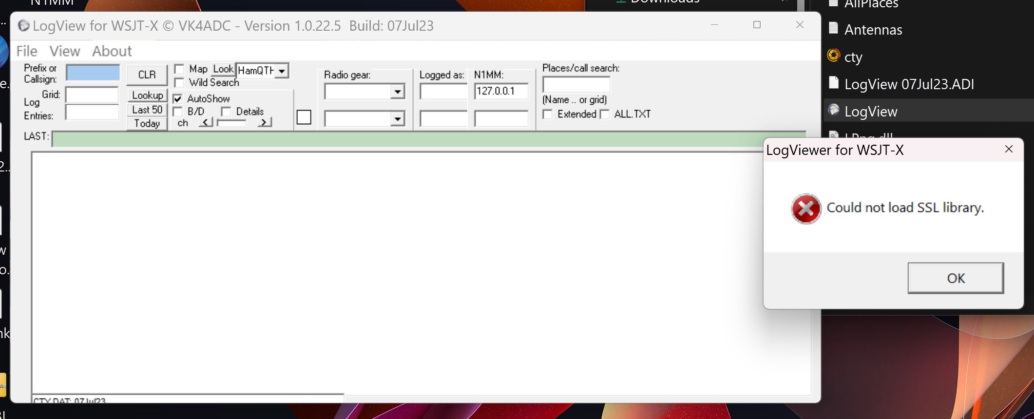Hello, Tom VA3TS here. I hoped you could help with my installation of logview, I have wsjt working fine on my win11 computer, But I get these errors when running the software. Program disk locations c:/logview and C:\Users\tomst\AppData\Local\WSJT-X