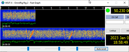 (01-01-2023, 05:21 AM)VK4ADC Wrote: In the image from Fast Graph in WSJTX below, there is an angled 'burn' effect that I have never managed to find an explanation for. For compactness, the burn image is overlaid with the time date and freq from WSJTX itself. Yagi is typically at 210 degrees as it is during MSK operations to work South (eg VK1,2,3,7).