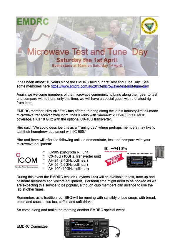 EMDRC Microwave Test and Tune day Saturday 1st April