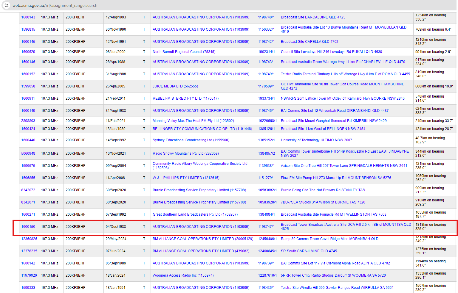 That frequency is used all round Australia for the RN service, you can check locations here https://www.transparency.gov.au/publicat...requencies