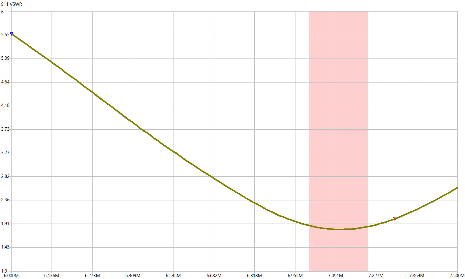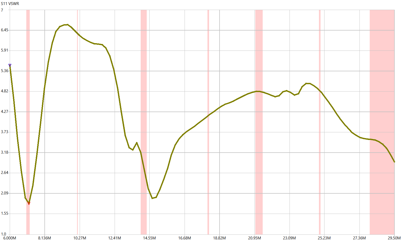 The next test will be to move the entry choke to next to the balun and do a sweep and see where the lowest VSWR/Resonance ends up. Happily, to do that doesn't require a ladder, the design using pulleys and halyards allows me to lower everything to ground level)