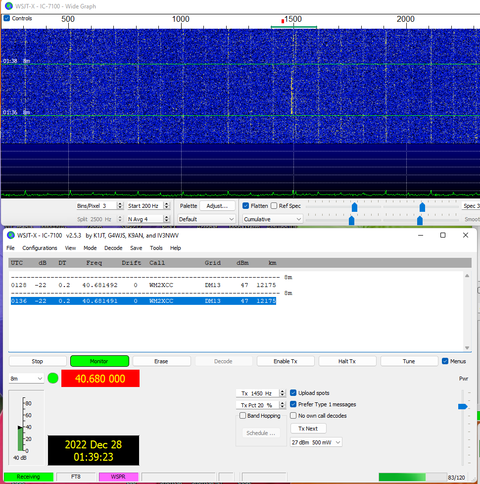 Numerous long lasting 6m WSPR opening with Chris N3IZN today 28.12.22 during the middle of the day.