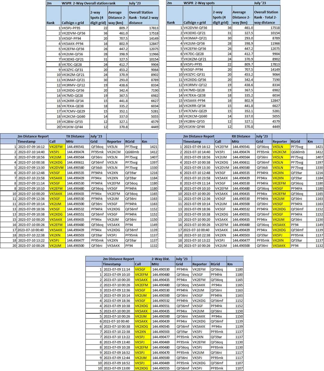 Final results for the JULY leg of the 6m & 2m WSPR Challenge!