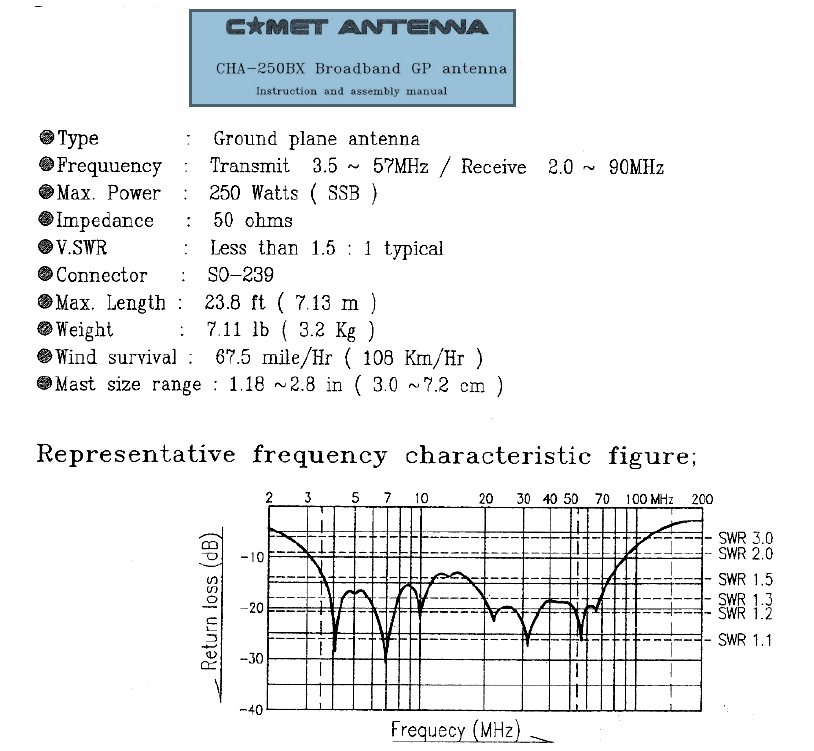 I was perusing my HDD archive today and found a Comet folder and it contained a CHA250BX file dated 2009..  The part that was of greatest interest was the frequency coverage graph as attached below.