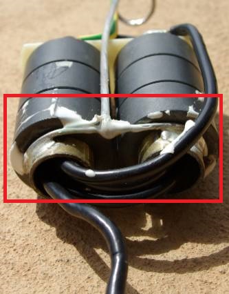 After my last caravan trip, I set about building up a multiple ratio UN-UN to use with my 7M long wire squid pole style antenna. I used a FT140-61 toroid with quadrifilar windings and where the joints between the windings are, those points were taken to separate connection point screws on the ABS box housing. That gave me ratio points of 4:1, 9:1 and 16:1 that I could attach the antenna wire end to via a crocodile clip. The earthy side of the assembly connected to the coax connector and thence to the caravan frame via a second croc clip and braid.
