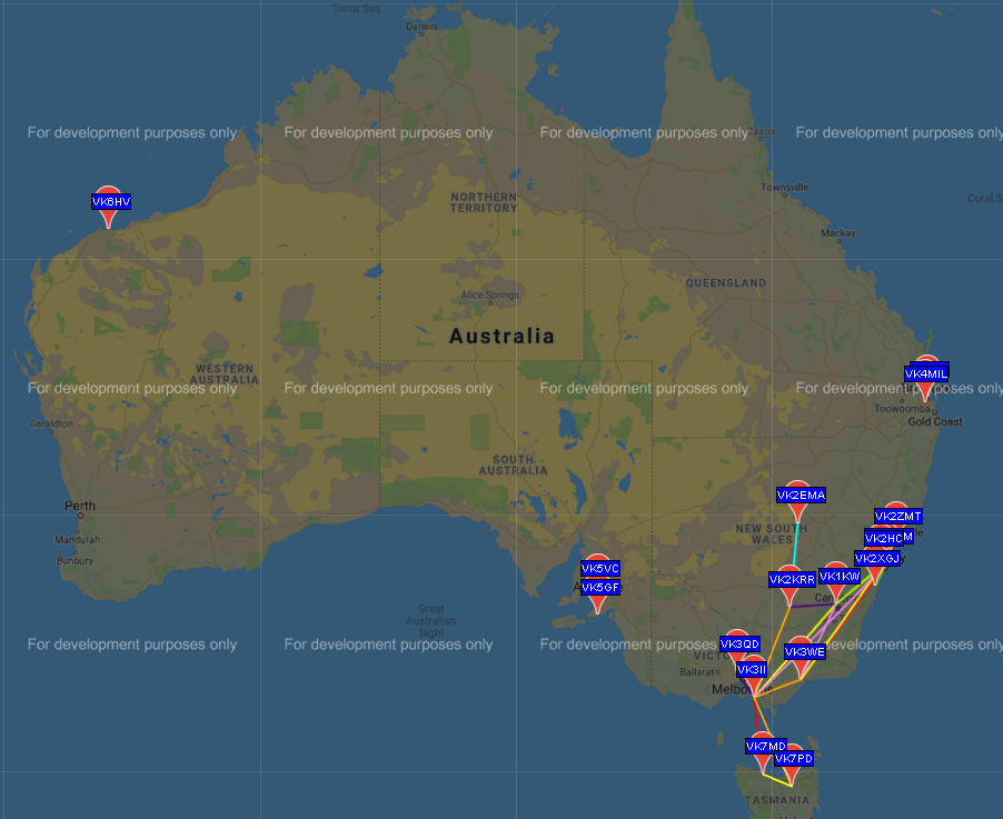 I was unable to find any paths across the high MUF areas and was using FM Broadcast and AIS into the Bight. There are no VK6's on 2m at present which is not helping the situation.