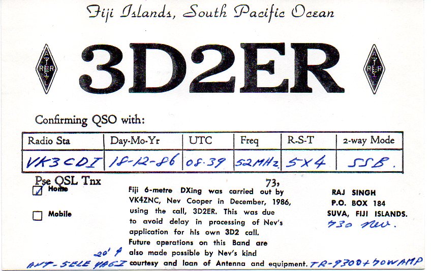 Six metre operators may well remember Raj for activating Fiji on 50MHz back around the 1986 & 1987