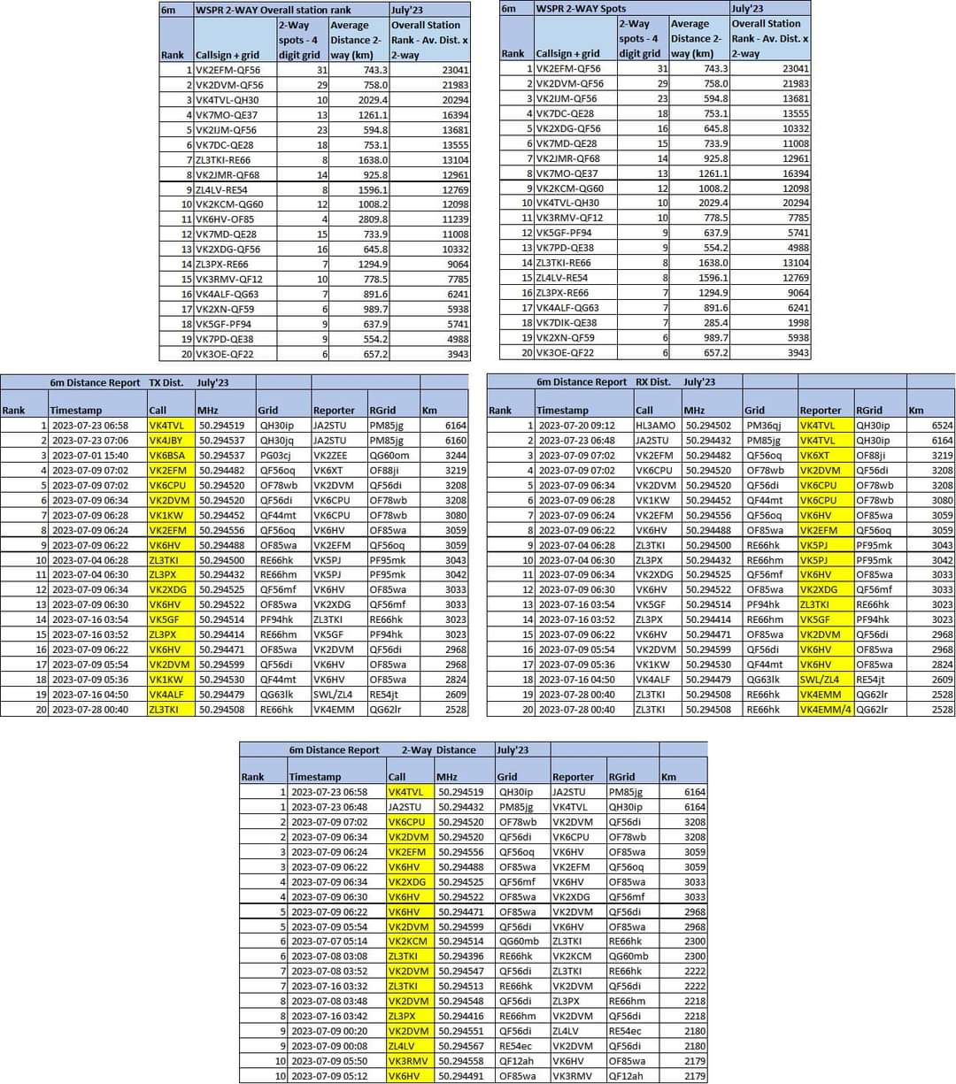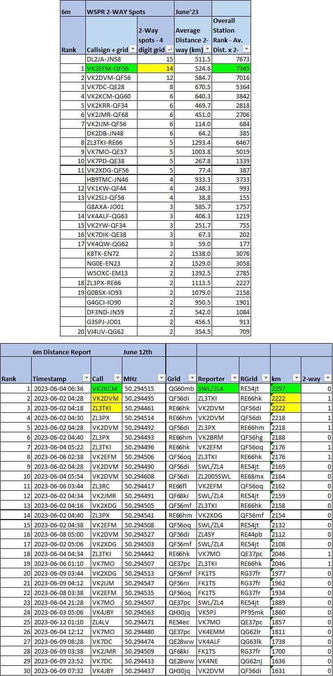 (There could be some missing distance data for the 6m WSPR RX Distance table, but will update that if its updated by John VK2IJM)
