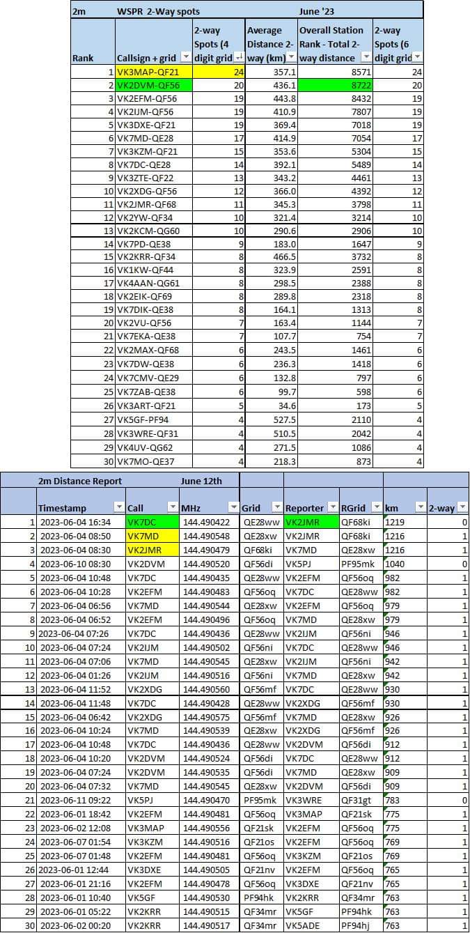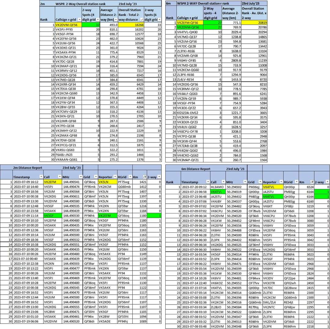 (There could be some missing distance data for the 6m WSPR RX Distance table, but will update that if its updated by John VK2IJM)