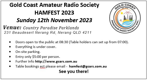 GOLD COAST HAMFEST : SUNDAY 12TH NOV 2023