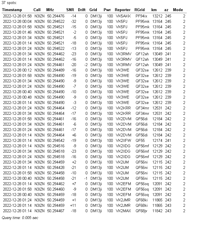 Numerous long lasting 6m WSPR opening with Chris N3IZN today 28.12.22 during the middle of the day.