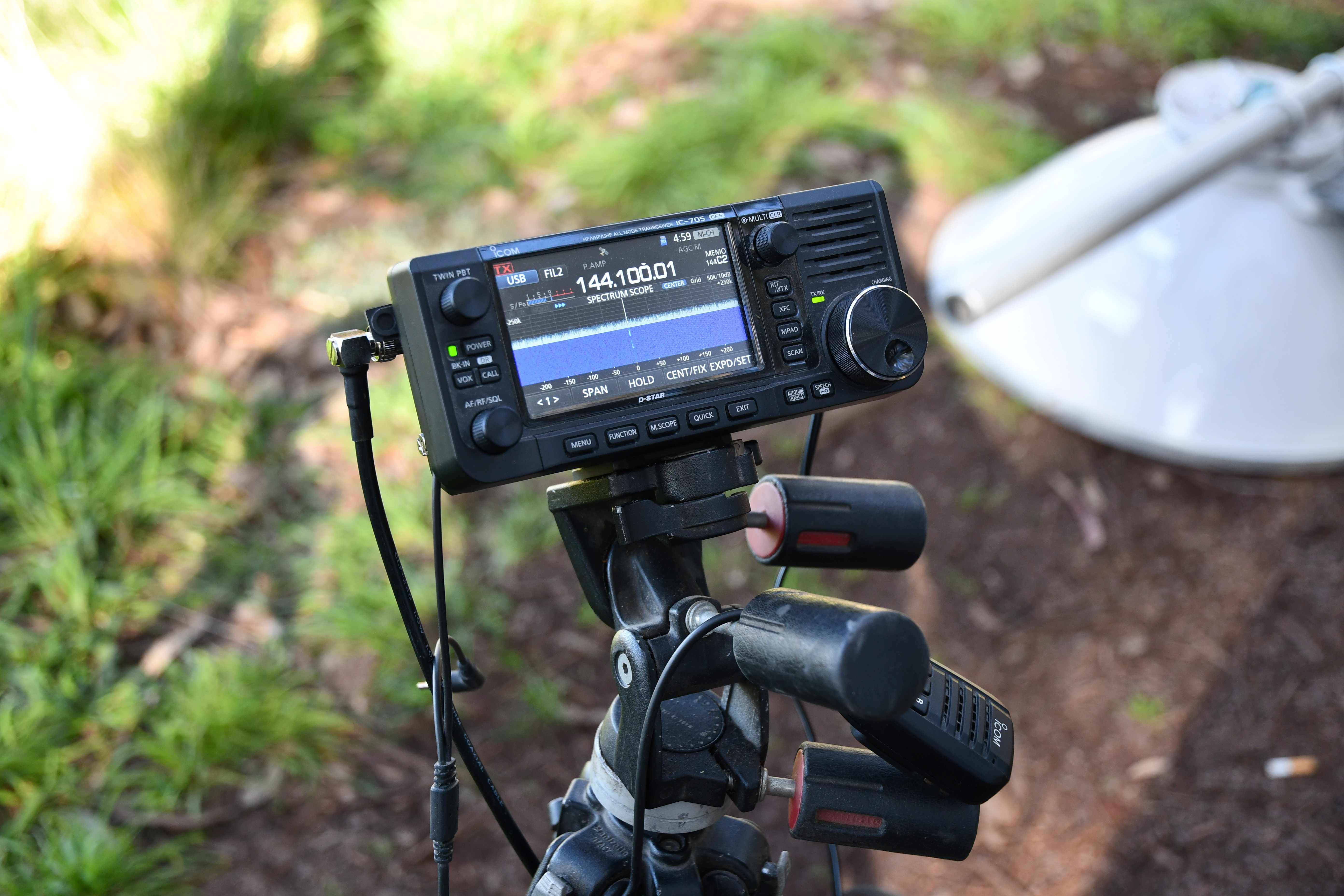 An impromptu VK3 Microwave Activity Day was announced yesterday for 3pm today. I hastily packed everything up (or so I thought) and took off to Mt Buninyong (Grid: QF12XI) with all bands from 2m to 5.7G. My new system consists of a dual band 2/70 yagi on a three section lighting stand, with the uWave bands on a common mounting system that sits on a laser tripod.
