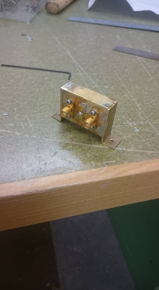 The design uses a small piece of WR-90 and some small hardware which should be easy to obtain.